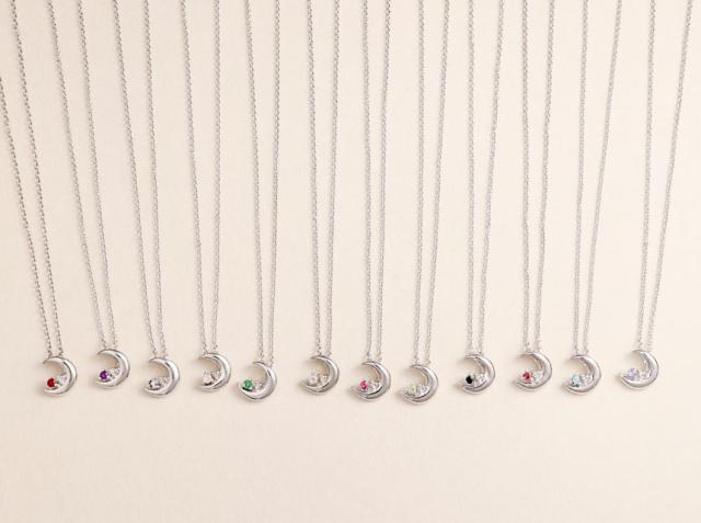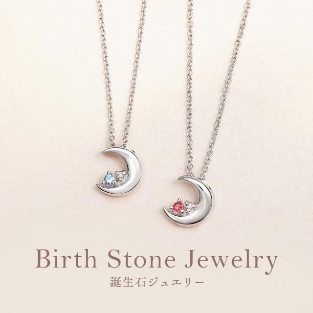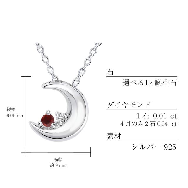 誰もが憧れる天然ダイヤモンドと誕生石の輝きはまるで夜空にきらめく星のよう。大人の魅力を引き立てる、とってもかわいいムーンネックレス。胸元にパッとした華やかさをプラス、大人な雰囲気を醸し出してくれます。プレゼントにも断然オススメですね。