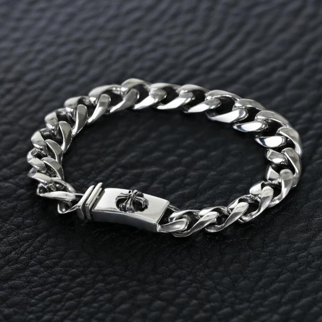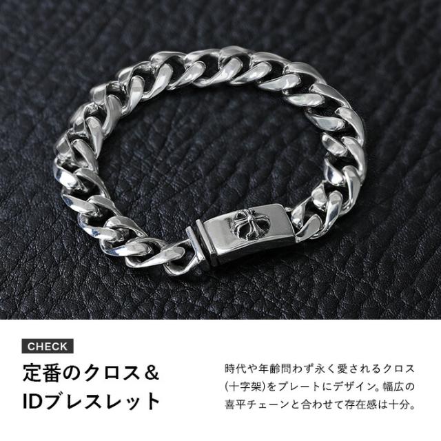 留め具部分にクロス(十字架)をデザインしたブレスレット。喜平チェーンも幅広で存在感抜群です。シルバーアクセ好きなら1つは持っておきたい、定番デザインのアクセサリーです。