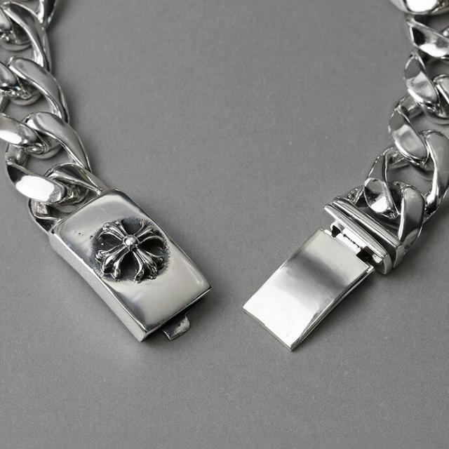 説明 | 留め具部分にクロス(十字架)をデザインしたブレスレット。喜平チェーンも幅広で存在感抜群です。シルバーアクセ好きなら1つは持っておきたい、定番デザインのアクセサリーです。 シルバー925とはシルバー(銀)をアクセサリーとして使用する場合に最適な品質を誇る素材を示します。イギリスではシルバー925を「スターリング」(sterling)と表し、これを使用しているアクセサリーは高品質である事を定めています。 |