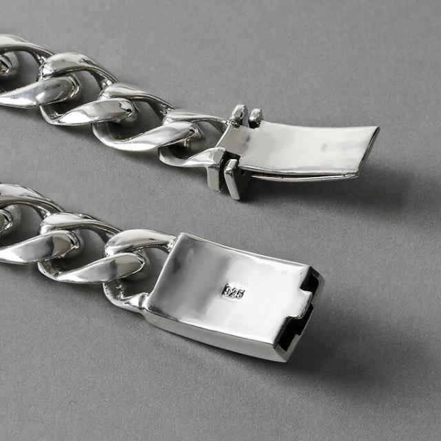 素材・サイズ | 【素材】 シルバー925 【サイズ】 全長:約21.5cm、内周:約19cm 幅:約11mm 重量:約40g |