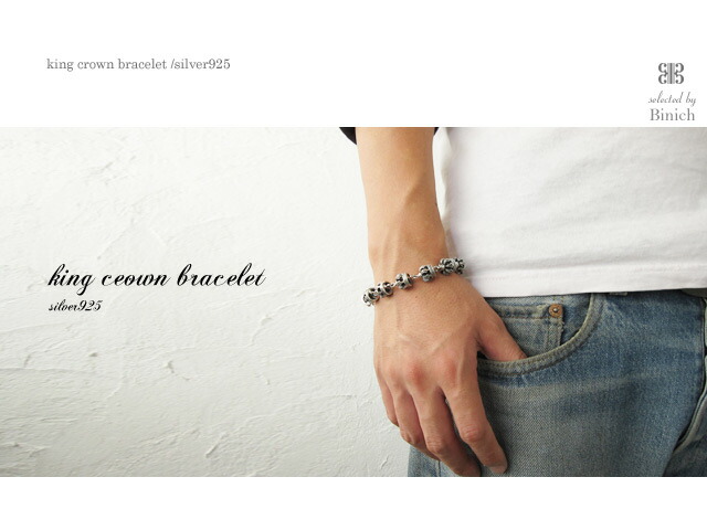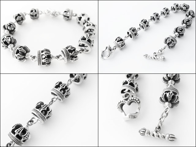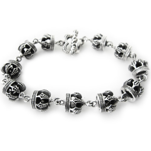 王冠(クラウン)モチーフを連結した、シルバー925製メンズブレスレット。