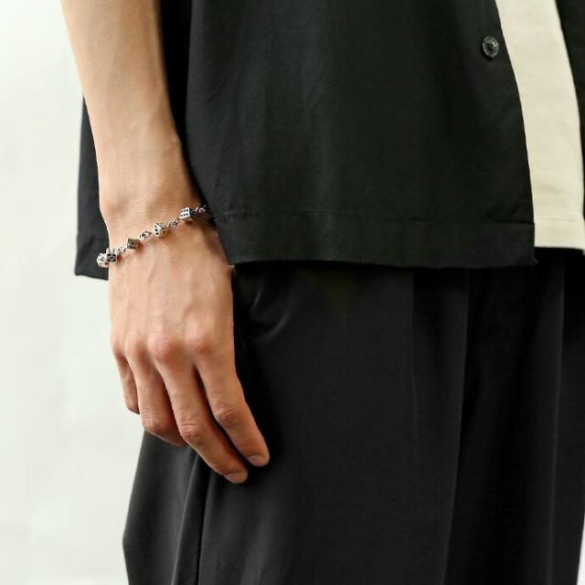 シルバー925 ダイス マンテルチェーン ブレスレット メンズ 人気 おしゃれ ストリート系 立体的 サイコロモチーフ 遊び心 おもしろ シルバーアクセサリー 男性 bab-0134