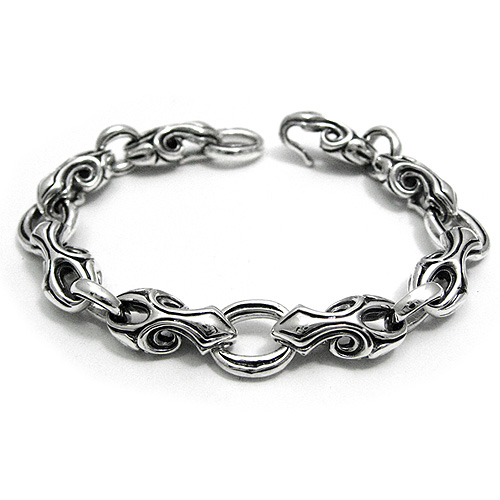 流れるような曲線を描く独特のリンクデザインが印象的なメンズブレスレット。