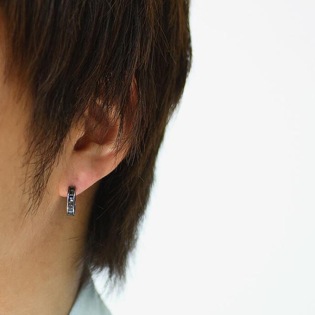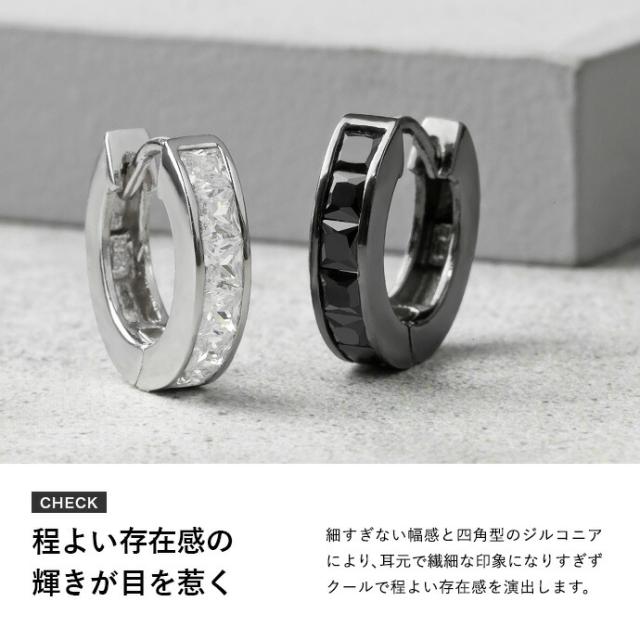 ピアス メンズ フープピアス リングピアス シルバーピアス シルバー925 ジルコニア キュービックジルコニア 片耳用 小さめ シンプル ブラック クリア カジュアル きれいめ プレゼント ギフト 誕生日 記念日 ペアアクセサリー カップル お揃い