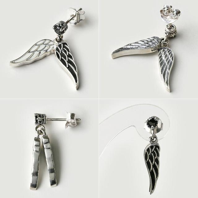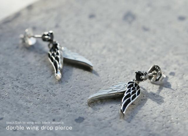 ダブルウイングドロップピアス メンズ シルバー925 アクセサリー シルバーピアス 片耳用 (1個売り)
