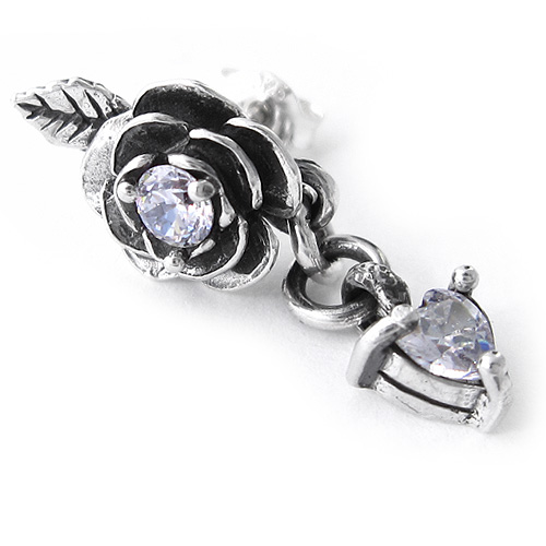 ピアス メンズ レディース シルバー925 ローズ 薔薇 ハート ドロップピアス 揺れる キュービックジルコニア メンズピアス 片耳用 (1個売り)