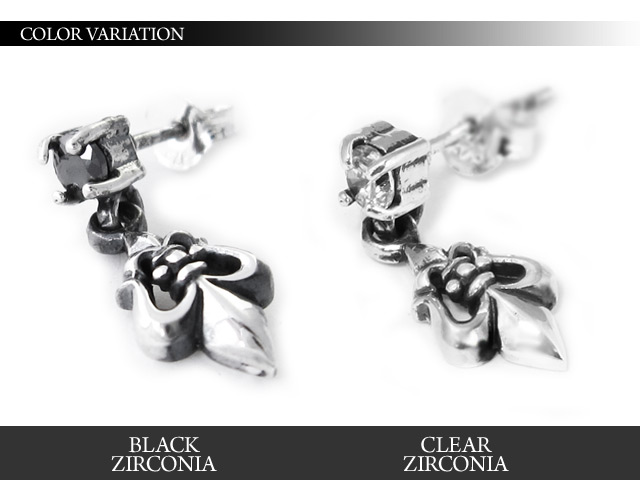 ピアス メンズ レディース シルバー925 ドロップピアス 揺れる 百合の紋章 キュービックジルコニア メンズピアス 片耳用 (1個売り)