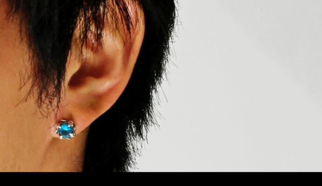 ピアス メンズ レディース シルバー925 キュービックジルコニア ブラック ブルー 赤 緑 おしゃれ メンズピアス 片耳用 (1個売り)