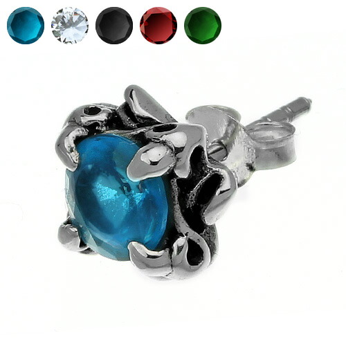 5種類(ブルー、クリア、ブラック、レッド、グリーン)のカラージルコニアが爪で鷲掴みされたようなデザイン。大きめのストーンのエレガントさとシルバーのワイルドさが融合した絶妙ピアスです。