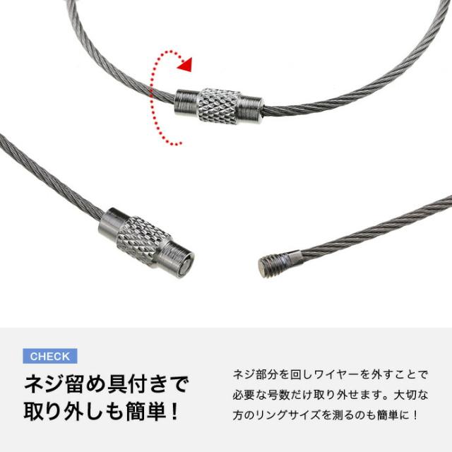 ※測定の際、リングゲージ全体の重みにより指とゲージに隙間が生じる場合がございます。リングゲージ全体を手のひらや平らな所に置くか、ゲージをワイヤーから外して測定して下さい。