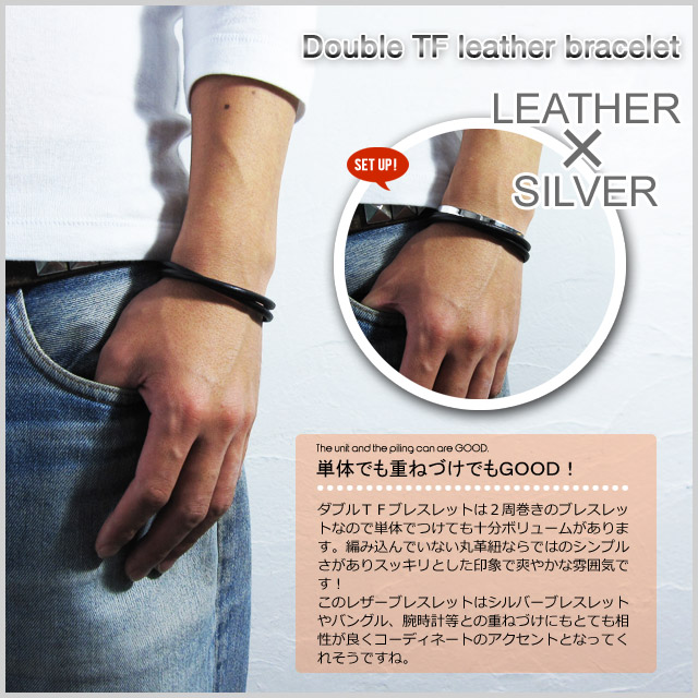 ■商品名:ダブルTFレザーブレスレット シルバー925 アクセサリー メンズ 革 レザー