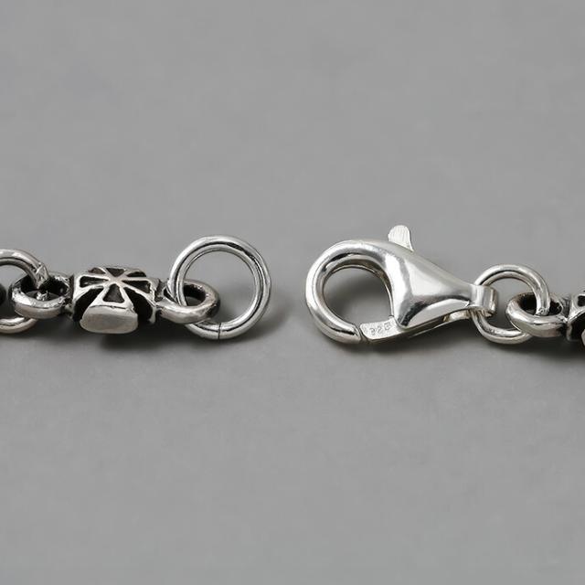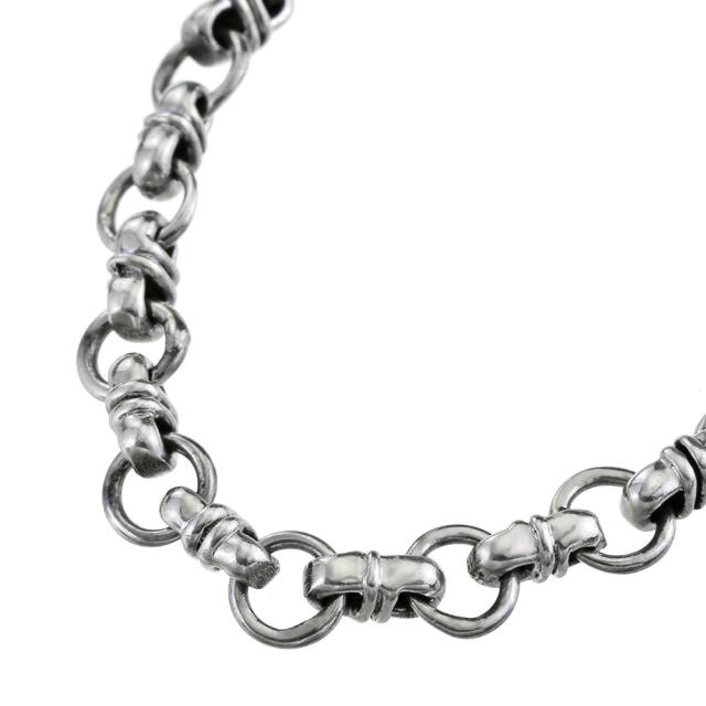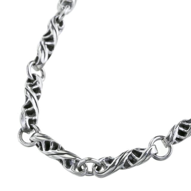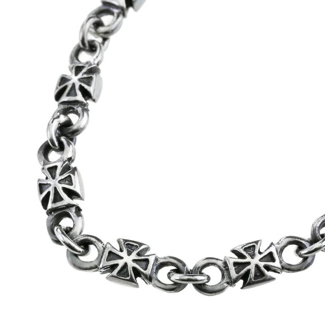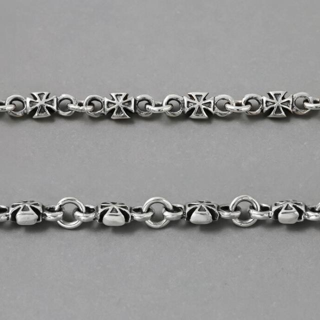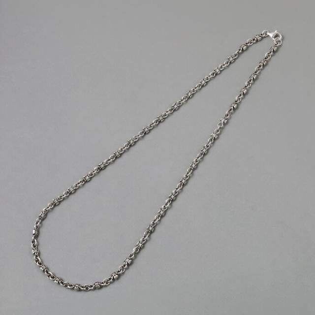 クロスがデザインされたチェーンネックレス。燻し加工を施し、細部まで丁寧に作られたクロスパーツを連ねることにより、サイズ以上のボリューム感と重量感を演出します。チェーンのみでネックレスとして使うのも良し、ペンダントトップを通してワンランク上のコーディネイトを楽しむのも良しの、コーデの幅を広げてくれるアイテムです。