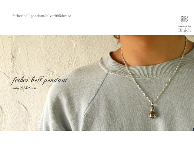ベルモチーフにブラス(真鍮)素材のフェザーがデザインされた小振りなペンダント。クラシックなベルモチーフにブラス素材がアクセントを加えカジュアルに使えそう。ちなみにベルの中には振り棒がついています。