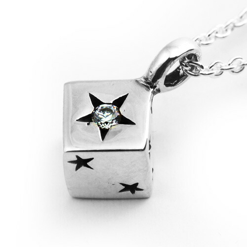 ■商品名:ラッキースターダイスペンダント ネックレス メンズ(2mmアズキチェーン付きセット) 星 シルバー925 アクセサリー シルバーペンダント
