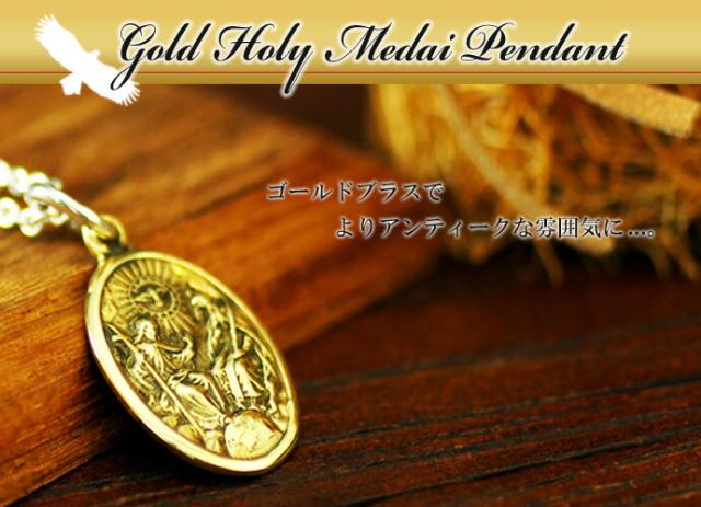 ■商品名:ゴールドホーリーメダイペンダント (トップのみ) ネックレス メンズ ブラス 真鍮