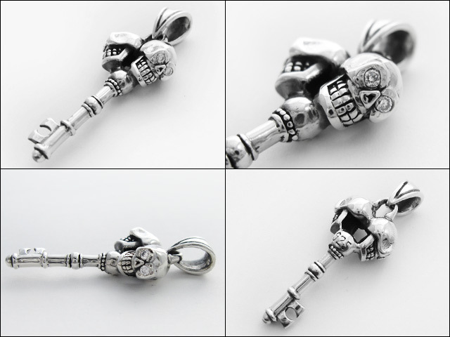 ■商品名:ダブルスカルキーペンダント (トップのみ) ネックレス メンズ シルバー925 アクセサリー 鍵 シルバーペンダント