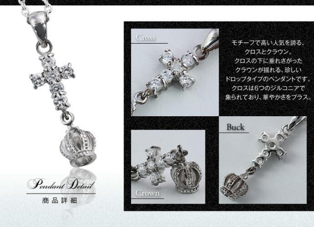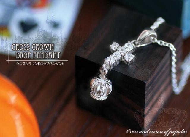 モチーフで高い人気を誇る、クロスとクラウン。クロスの下に垂れさがったクラウンが揺れる、珍しいドロップタイプのペンダントです。クロスは6つのジルコニアで象られており、華やかさをプラス。