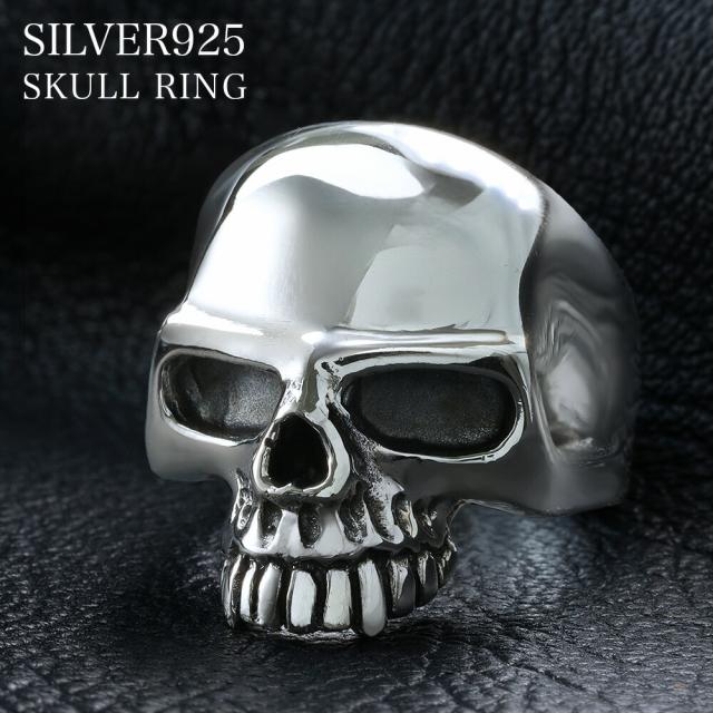 シルバー925 スカル ドクロ リング メンズ 指輪 ゴツめ 太め ガイコツ 骸骨 髑髏 ドクロマーク モンスター 個性的 シルバーリング 男性 シルバーアクセサリー bar-0601