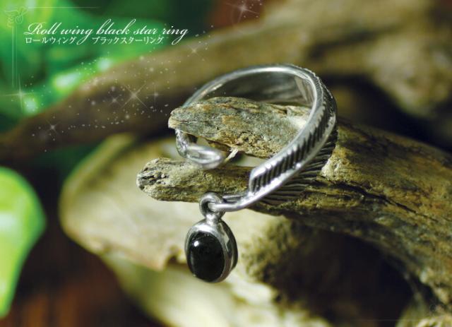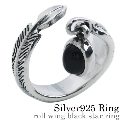 ■商品名:ロールウィングブラックスターリング メンズ 指輪 メンズ 星 シルバー925 アクセサリー ウイング フェザー 羽 翼 シルバーリング
