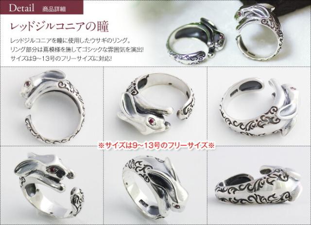 レッドジルコニアを瞳に使用したウサギのリング。リング部分は蔦模様を施してゴシックな雰囲気を演出!