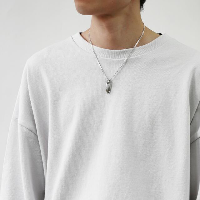 なめらかな曲線が印象的なペンダントトップ。サーフボードのような流線形フォルムと、さりげなく入るエッジが生み出す立体感により、シンプルながら存在感のある仕上がりになっています。胸元に自然に馴染み、控えめで上品なアクセントとして活躍します。