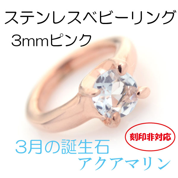ベビーリング アクアマリン 刻印非対応 ステンレス 3月 3mm ピンクモデル サージカルステンレス