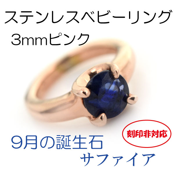 ベビーリング 刻印非対応 ステンレス 9月サファイア 3mm ピンクモデル サージカルステンレス