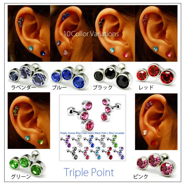 軟骨ピアス 16G 選べるカラー スリーポイント ヘリックス ストレートピアス ボディピアス