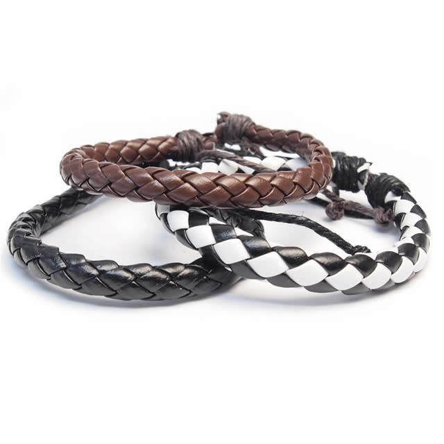 激安\410牛革レザーブレスレット シンプルループ(編みこみ)【本革/本皮/革ヒモ/バングル/メンズ/男女兼用/パンク/スカ】