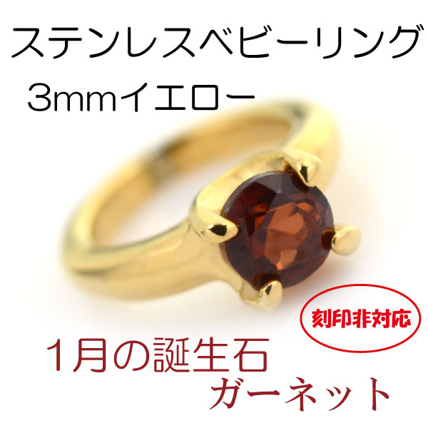 ベビーリング 誕生石 ガーネット 刻印非対応 ステンレス 1月 3mm イエローモデル サージカルステンレス