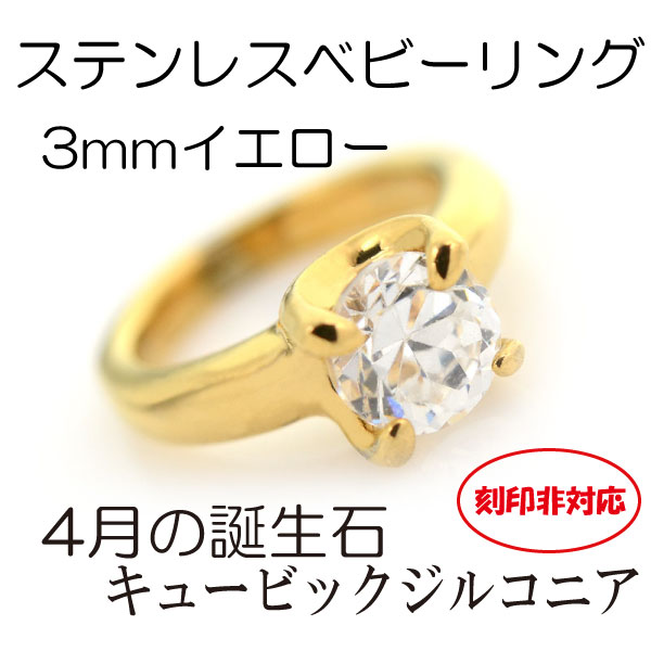 刻印非対応 サージカルステンレス製 ベビーリング 4月キュービックジルコニア 3mm イエローモデル