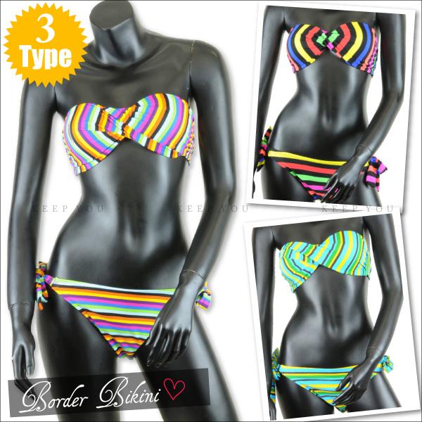 チューブトップ パッド付 ビキニ 水着 ボーダー 02 ビキニ レディース 水着 ビキニ バンドゥビキニ sw-12112-02 =┃