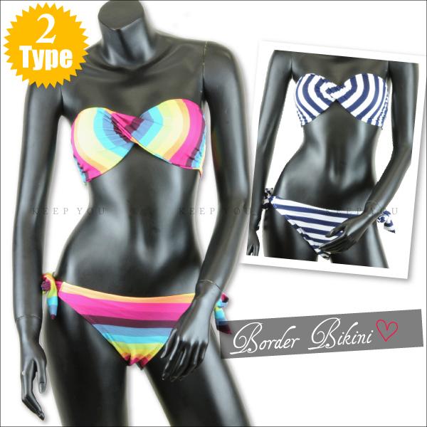 チューブトップ パッド付 ビキニ 水着 ボーダー 04 ビキニ レディース 水着 ビキニ バンドゥビキニ sw-12112-04 =┃