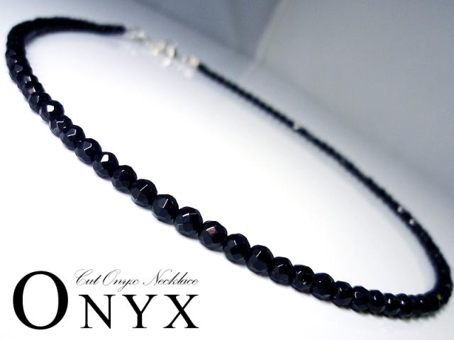 複雑なカット面でブラックダイヤの様な輝きを放つオニキスのネックレス!