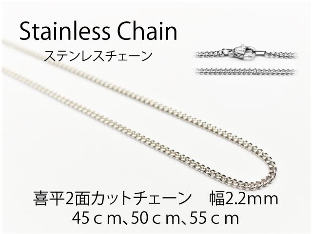 【送料無料】 ステンレスチェーン 喜平2面カットチェーン CDS60 幅2.2mm 長さ45cm、50cm、55cm サージカルステンレス ネックレス メンズ レディース