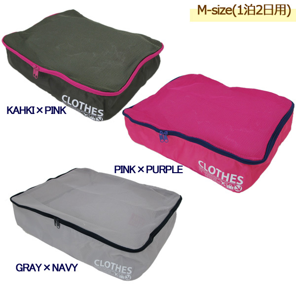 1泊〜3泊の旅行に便利な衣類ケース。底と上部がメッシュになっているので、中の衣類が確認できるのがうれしい。