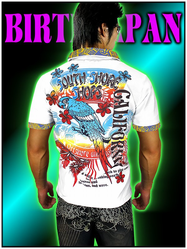 019白 お兄系&サーフ系両面プリント半袖ポロシャツ ホワイト 系メンナクギャルオアメカジ佐藤歩悪羅悪羅系 オラオラ系 服 悪党の店 バースジャパン BIRTHJAPAN