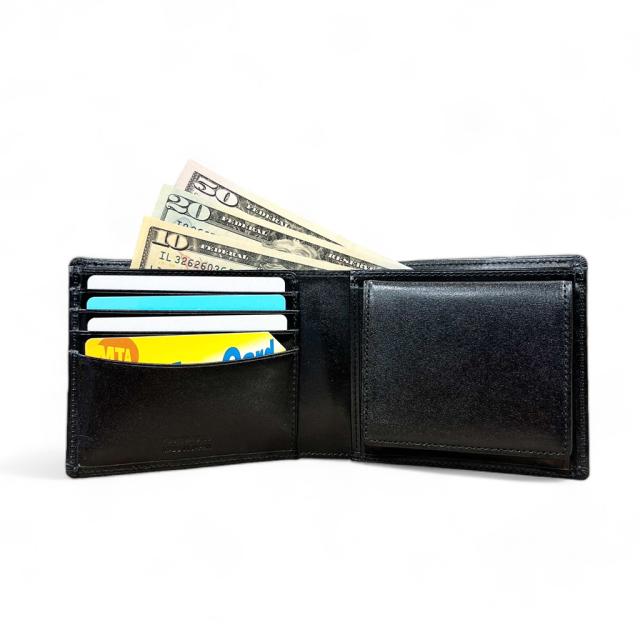 艶やかな革を用いた小物のシリーズです。 POINT 01 お札入れは収納しやすく、仕切りがあります。