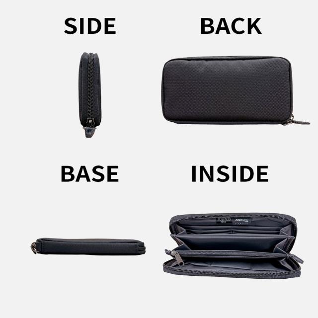 【 メイン(ラウンドファスナー開閉) 】 札入れ×3、カードポケット×11、フリーポケット×2、小銭入れ×1 【 サイド 】 Dカン×1 |