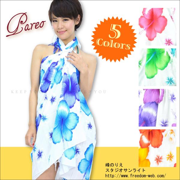 パレオ 白ベース ハイビスカス 花柄 全5色 パレオ バンドゥビキニ 三角ビキニ ホルタービキニ コーディネート p-073 ┃
