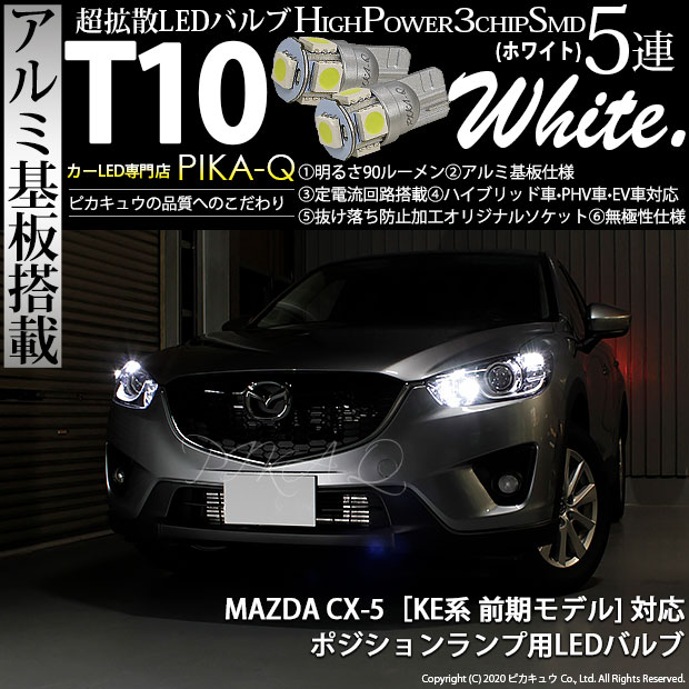 マツダ CX-5 (KE系 前期) 対応 LED ポジションランプ T10 5連 90lm ホワイト アルミ基板搭載 2個 車幅灯 2-B-5