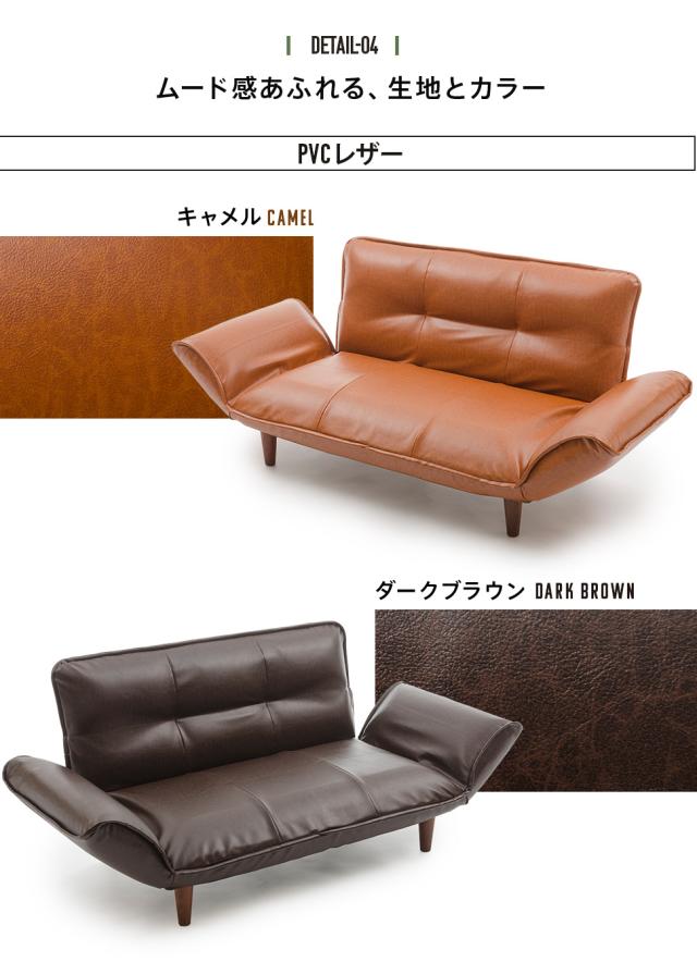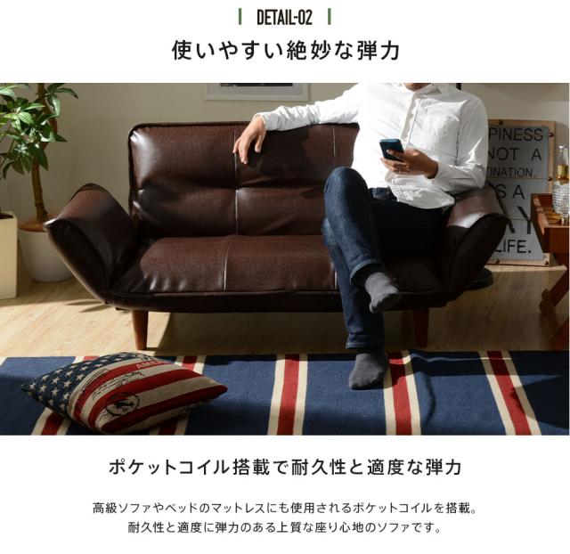 ソファー 2人掛け レザー 合皮 リクライニング ポケットコイル 肘付き 二人掛け 2人用 送料無料 日本製 ローソファー ソファーベッド