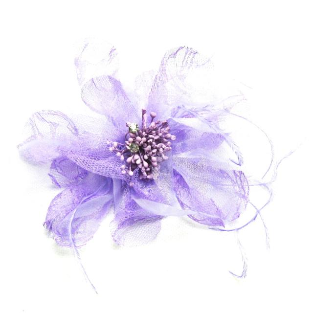 DCX002紫・入園式・卒園式・パーティー・二次会・髪飾り・ラインストーン・羽付コサージュ・クリップ2WAYタイプ