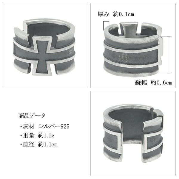 (シルバーアクセサリー シルバーアクセ シルバーイヤーカフ イヤーカフス イヤカフ ノンホールピアス イヤリング イヤークリップ メンズアクセサリー メンズジュエリー メンズイヤーカフ スターリングシルバー ゴシック ロック ハード 十字架 鉄十字 アイアンクロス クロス かっこいい)