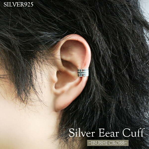 いぶし クロス シルバー イヤーカフ イヤーカフス 1P 片耳用 イヤークリップ メンズ シルバー925 シルバーアクセサリー イヤーカーフ メンズ レディース