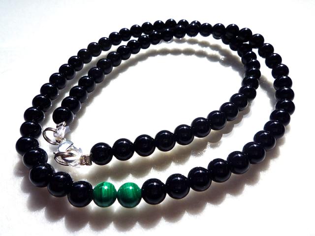 4A数珠高級マラカイト天然石が輝くオニキスネックレス★運気を良い方向に導く!