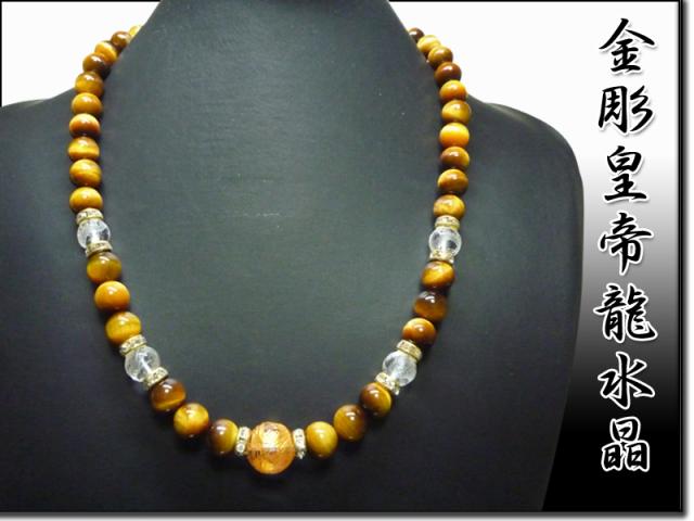 4Aタイガーアイ10mm数珠ネックレス金彫龍水晶14mmオラオラ★悪意を跳ね返して身を守る自己防衛の石