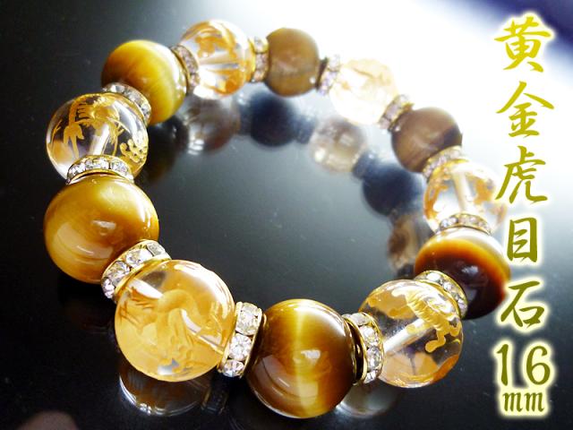 4A数珠ゴールデンタイガーアイ16mm四神水晶ブレスレットオラオラ ★金運・仕事運を導く!