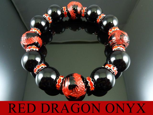 レッドドラゴン!赤龍オニキス18mm数珠ブレスレットオラオラ★悪意を跳ね返して身を守る自己防衛のパワーストーン