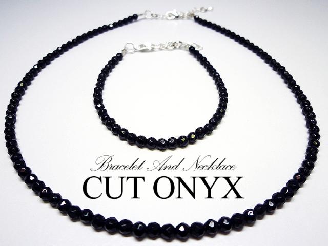 複雑なカット面でブラックダイヤの様な輝きを放つオニキスのネックレス&ブレスレット!